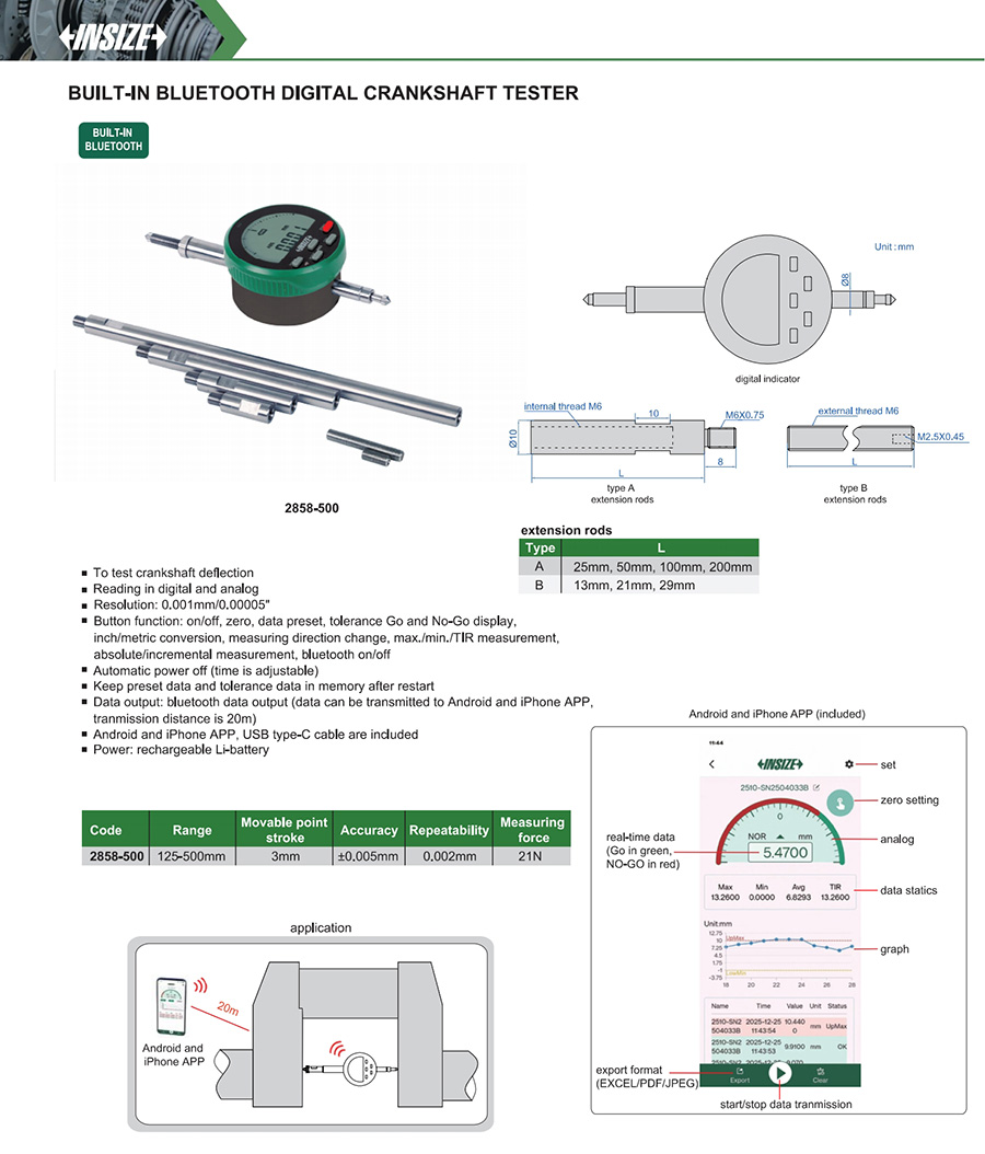 | 2858-500 | 125-500mm | ±0.005mm | 0.001mm/0.00005" |