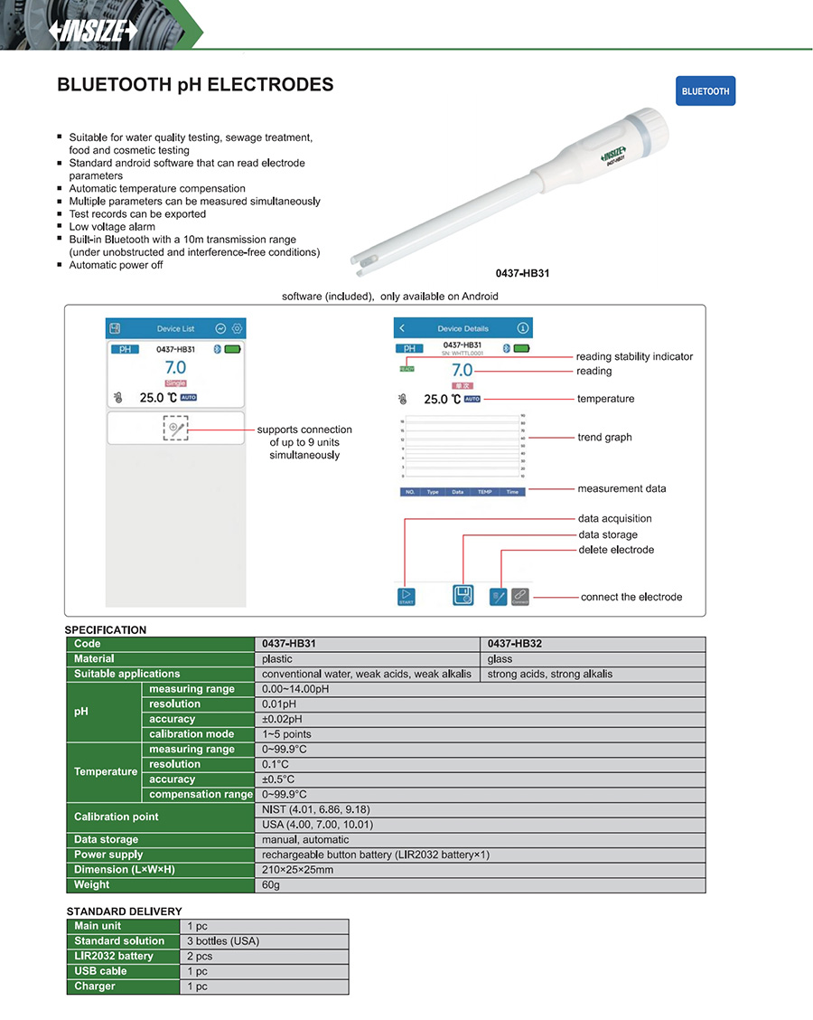 | 0437-HB31 | pH/mV | off-line | 0.00~14.00pH, 0~99.9°C | yes |