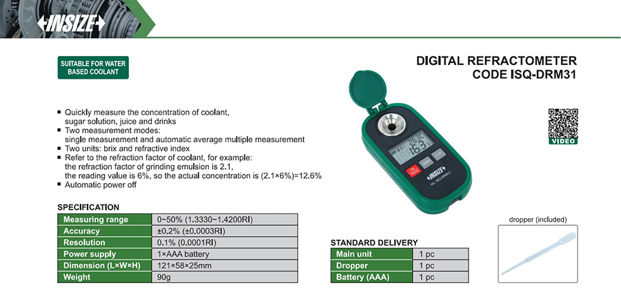 ISQ-DRM31 refractometer off-line water based coolant, sugar, juice, drinks digital