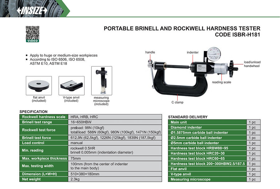 | ISBR-H181 | manual | 100mm (from the center of indenter to the main body) | HRA, HRB, HRC |