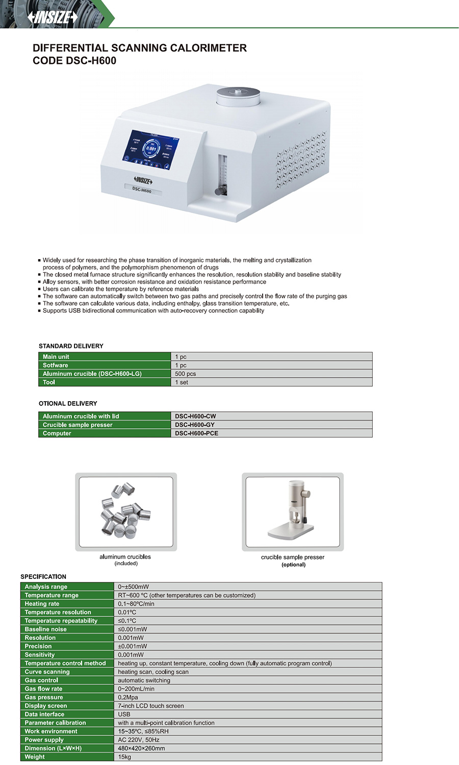 DSC-H600 0~±500mW 0.01ºC RT~600 ºC