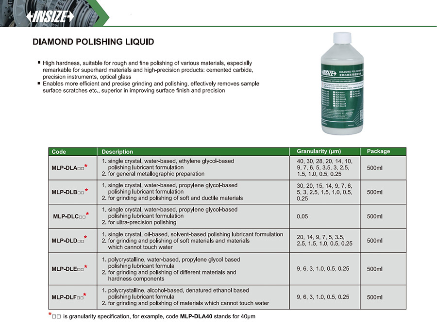 High hardness, suitable for rough and fine polishing of various materials, especially remarkable for superhard materials and high-precision products: cemented carbide, precision instruments, optical glass