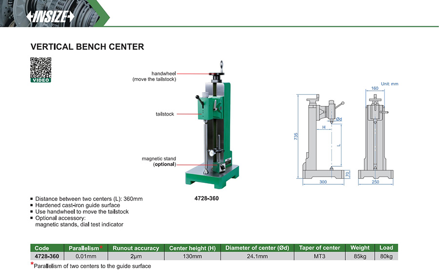 Optional accessories: magnetic stands, dial test indicator