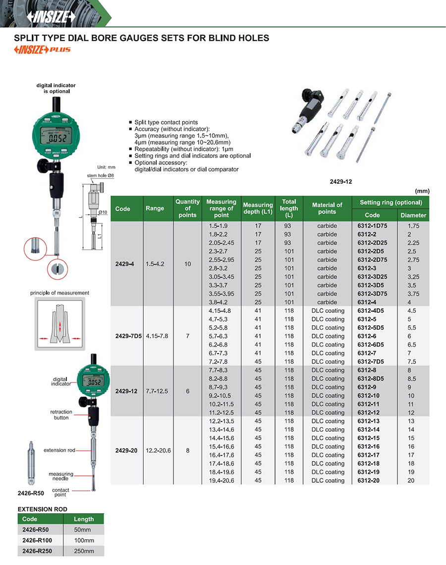 Home / Dimenzijska kontrola / Merilna orodja / Merilna orodja za premer in obseg izvrtin / Bore Gauges