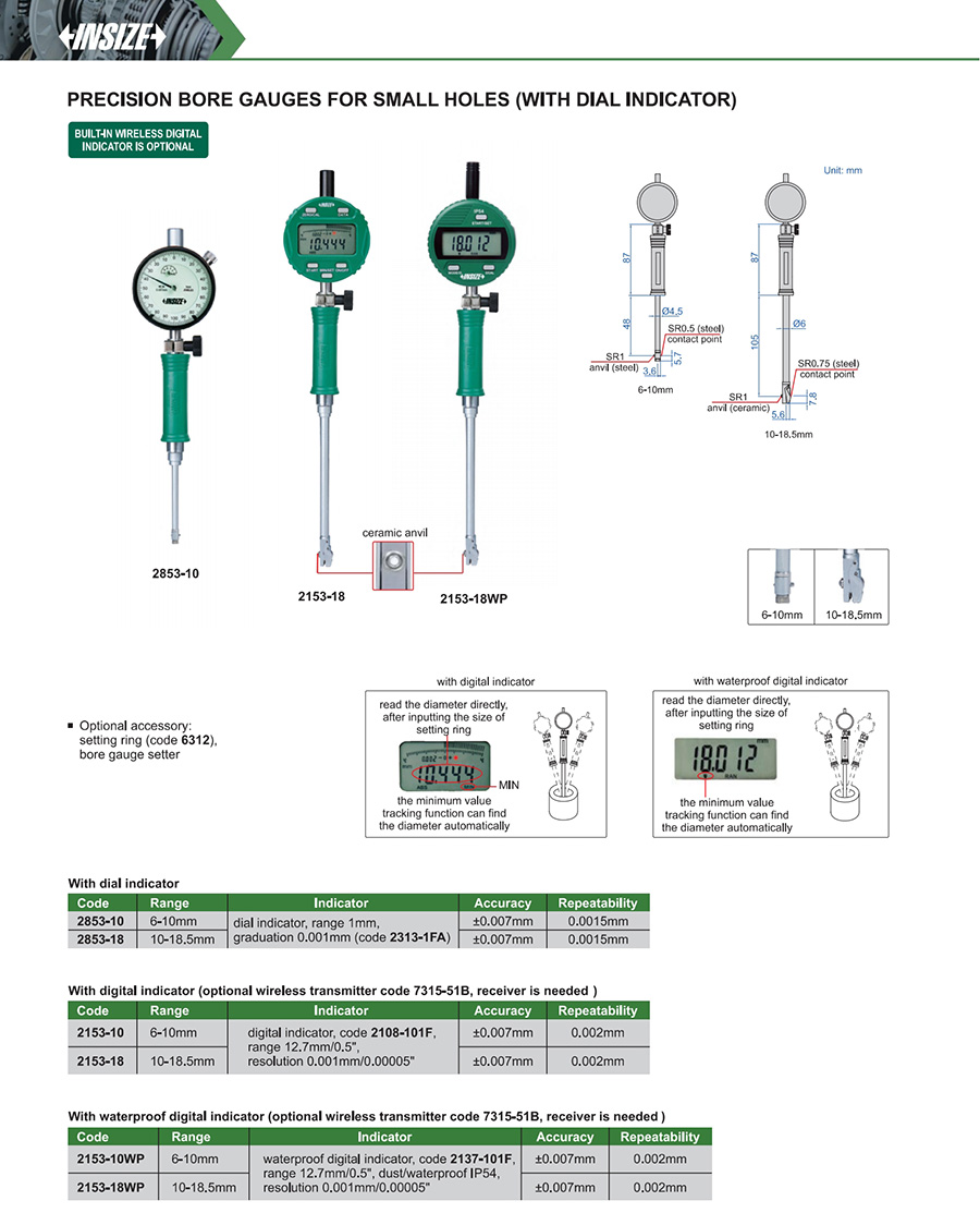 2153-18WP 10-18.5mm ±0.007mm 0.002mm