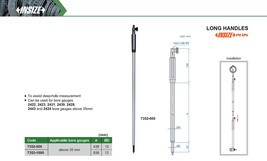 Can be used for bore gauges 2422, 2423, 2431, 2439, 2428, 2443 and 2424 bore gauges above 35mm
