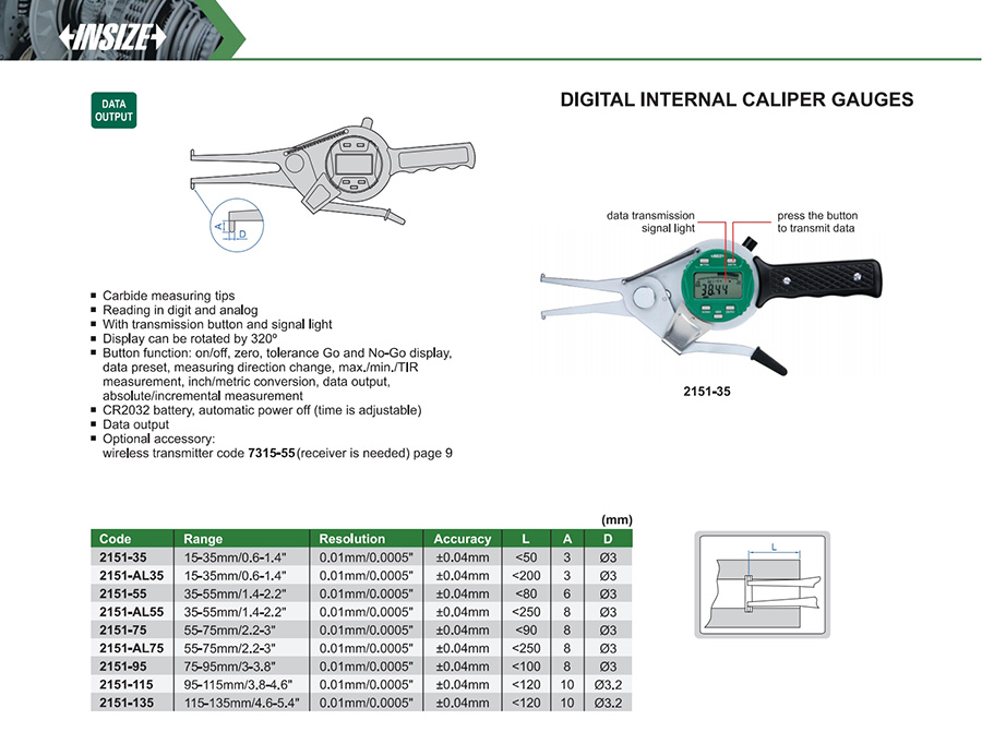 2151-135 115-135mm/4.6-5.4" ±0.04mm 0.01mm/0.0005"