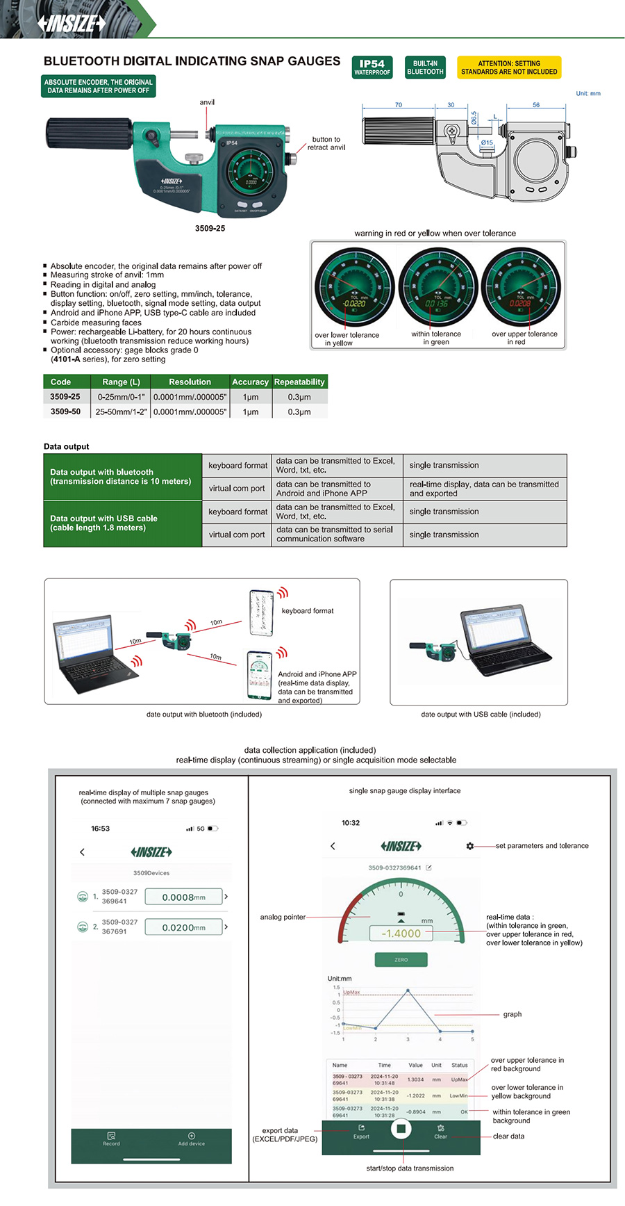 | 3509-50 | 25-50mm/1-2" | 1µm | 0.0001mm/0.000005" |