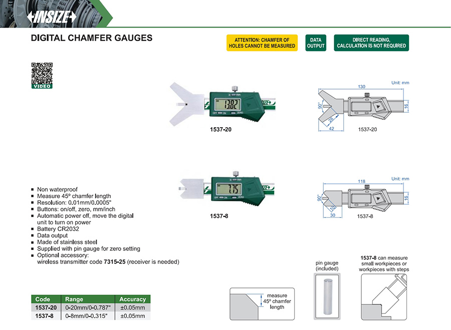 | 1537-20 | 0-20mm/0-0.787" | ±0.05mm | 0.01mm/0.0005" |