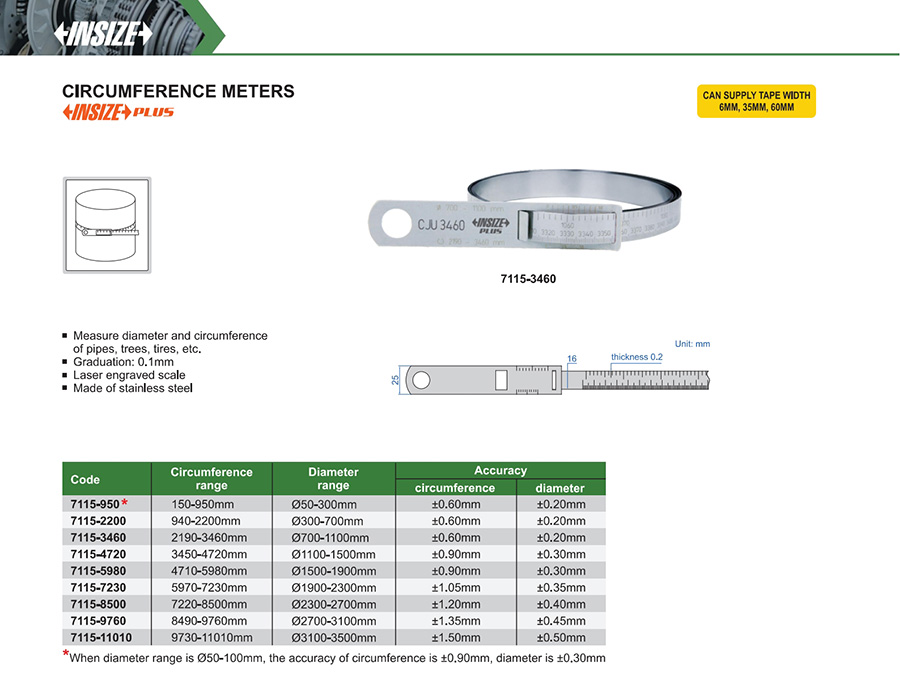 Home / Dimenzijska kontrola / Merilna orodja / Merilna orodja za premer in obseg izvrtin / Circumference Meters
