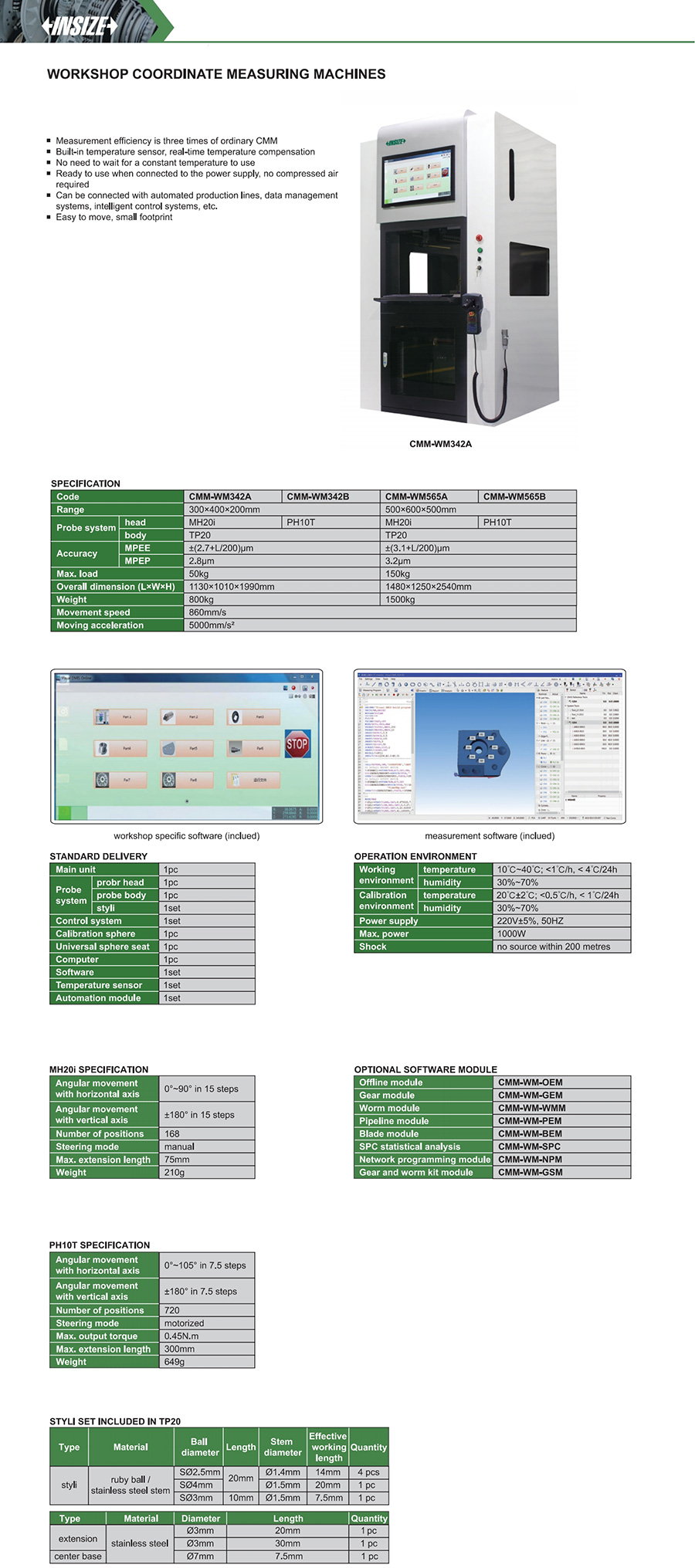 CMM-WM342B MPEE ±(2.7+L/200)μm, MPEP 2.8μm 860mm/s 5000mm/s²