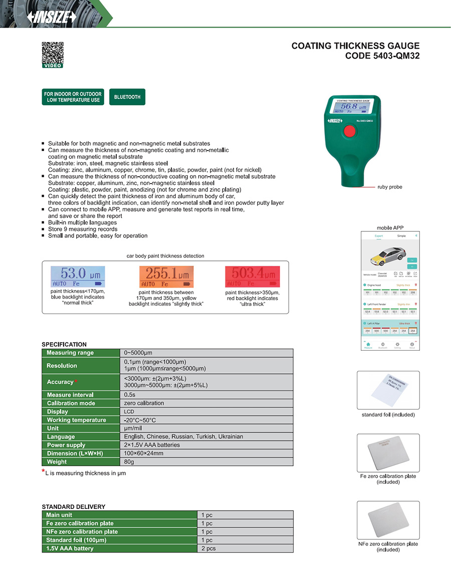 Can quickly detect the paint thickness of iron and aluminum body of car, three colors of backlight indication, can identify non-metal shell and iron powder putty layer