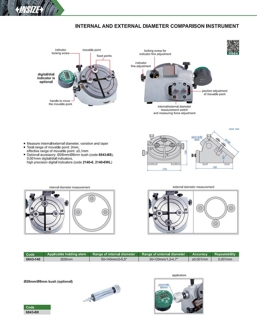 6843-140 ±0.001mm 0.001mm 30-120mm/1.2-4.7" 50-140mm/2-5.5"