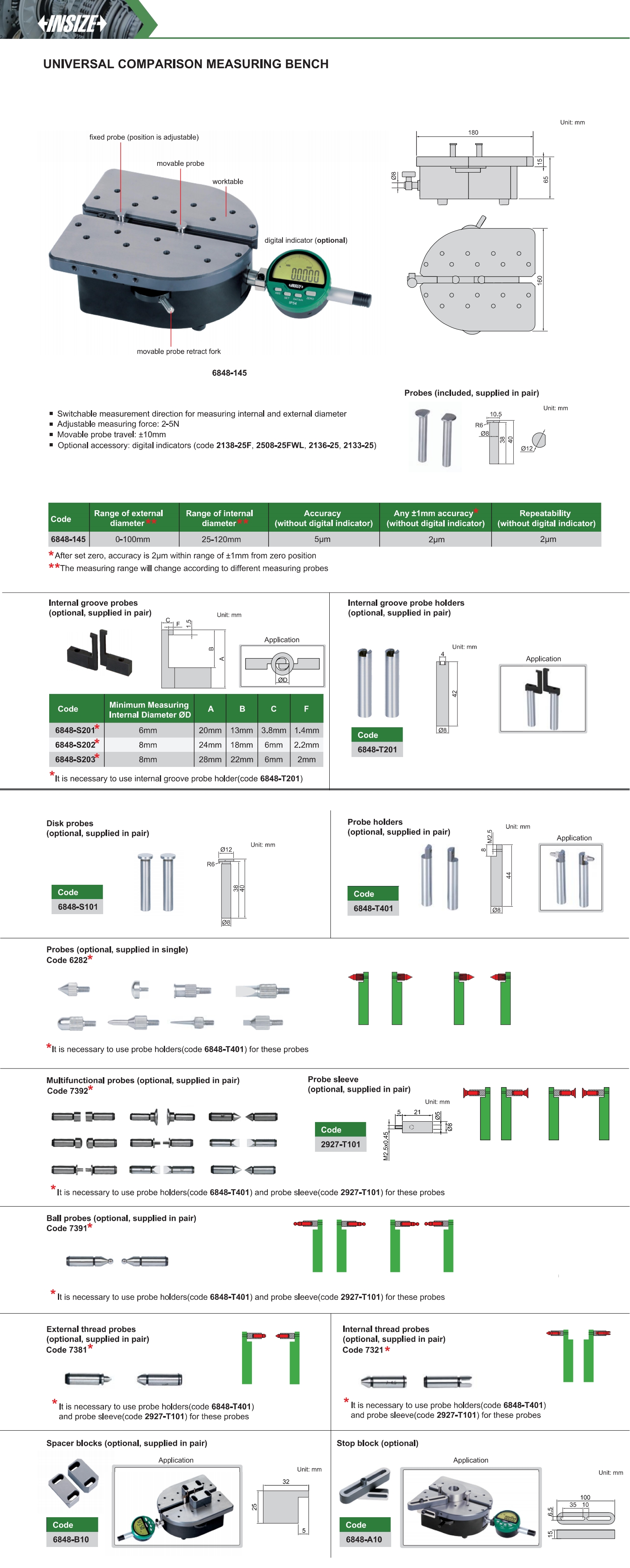 6848-145 5µm (without digital indicator) 2µm (without digital indicator) 0-100mm 25-120mm