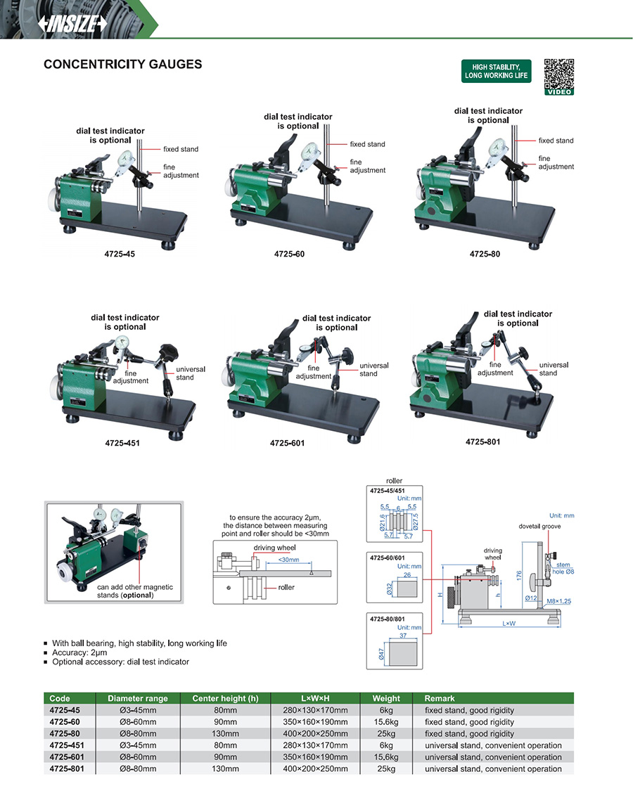 4725-45 Ø3-45mm 2µm fixed stand, good rigidity