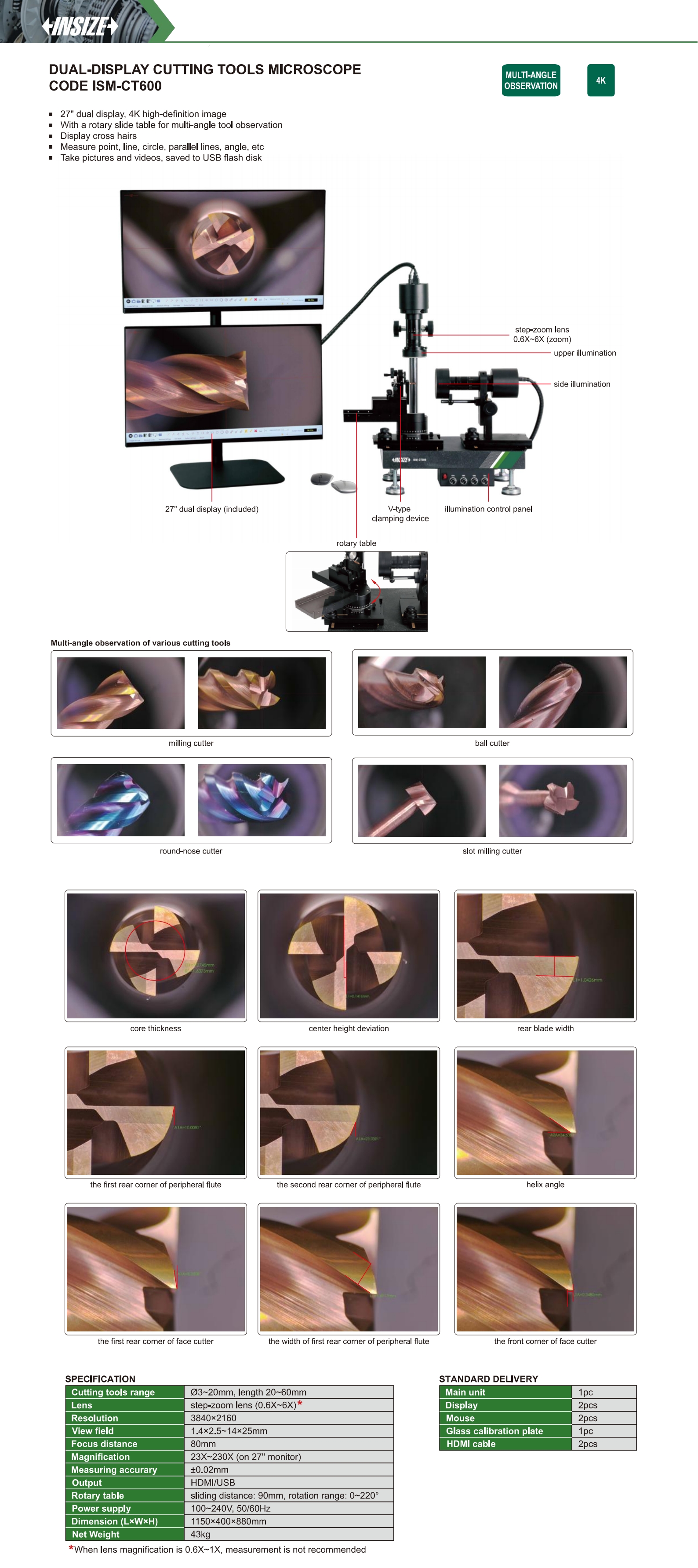 | ISM-CT600 | 3840x2160 | 23X~230X | 1.4x2.5~14x25mm | Ø3~20mm, length 20~60mm |