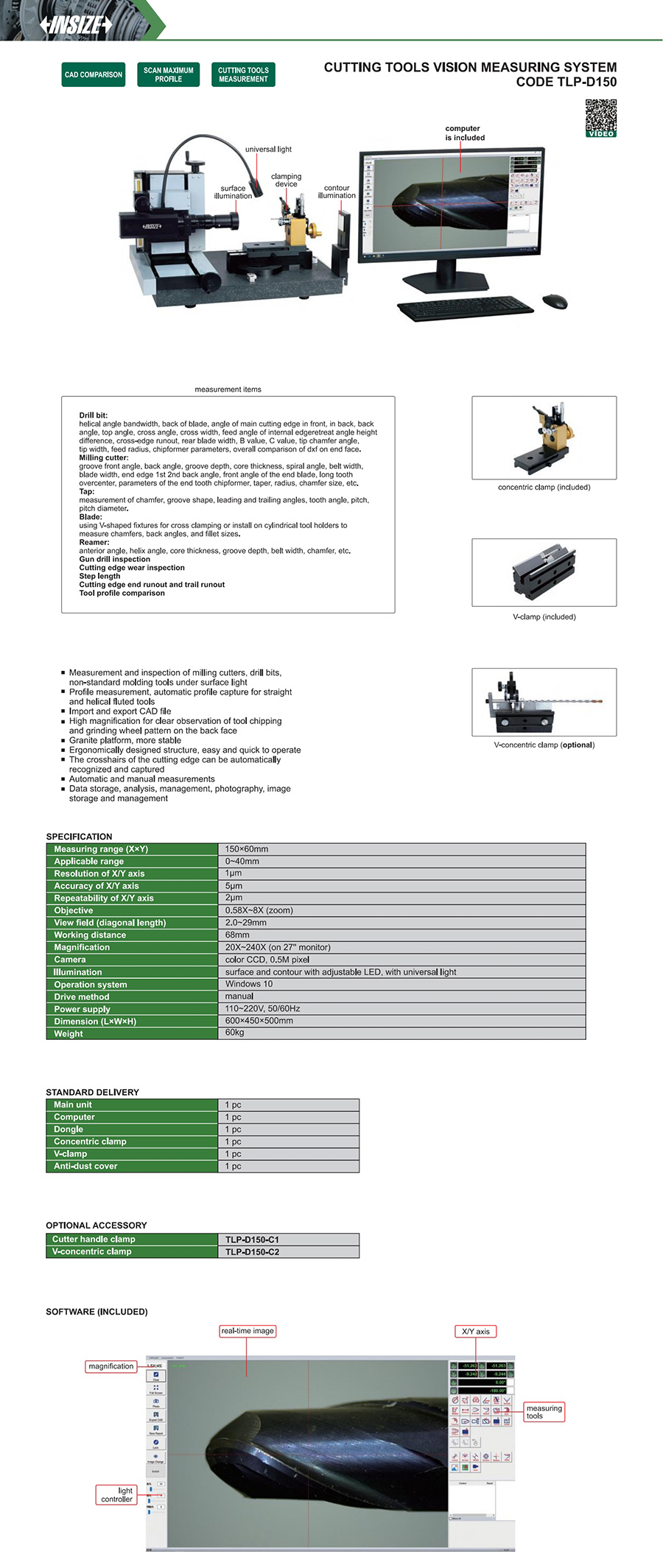 | TLP-D150 | 150×60mm | 5μm | 1μm | 2μm | 20X~240X (on 27'' monitor) |