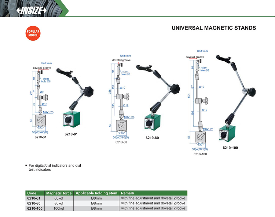 For digital/dial indicators and dial test indicators