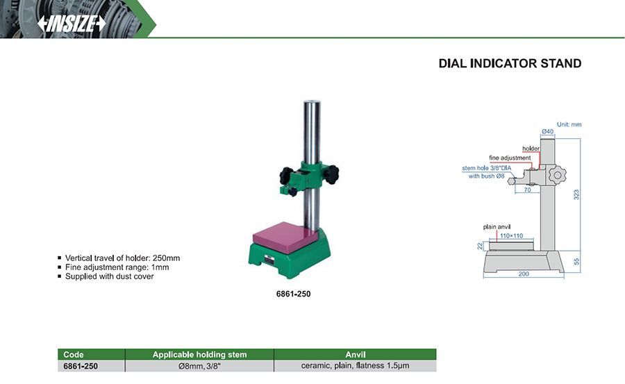Vertical travel of holder: 250mm