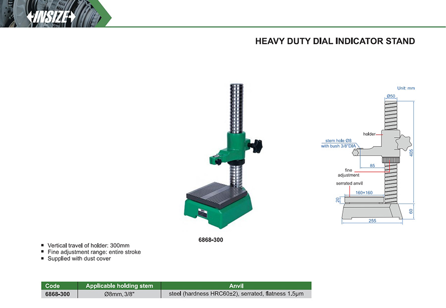 Vertical travel of holder: 300mm