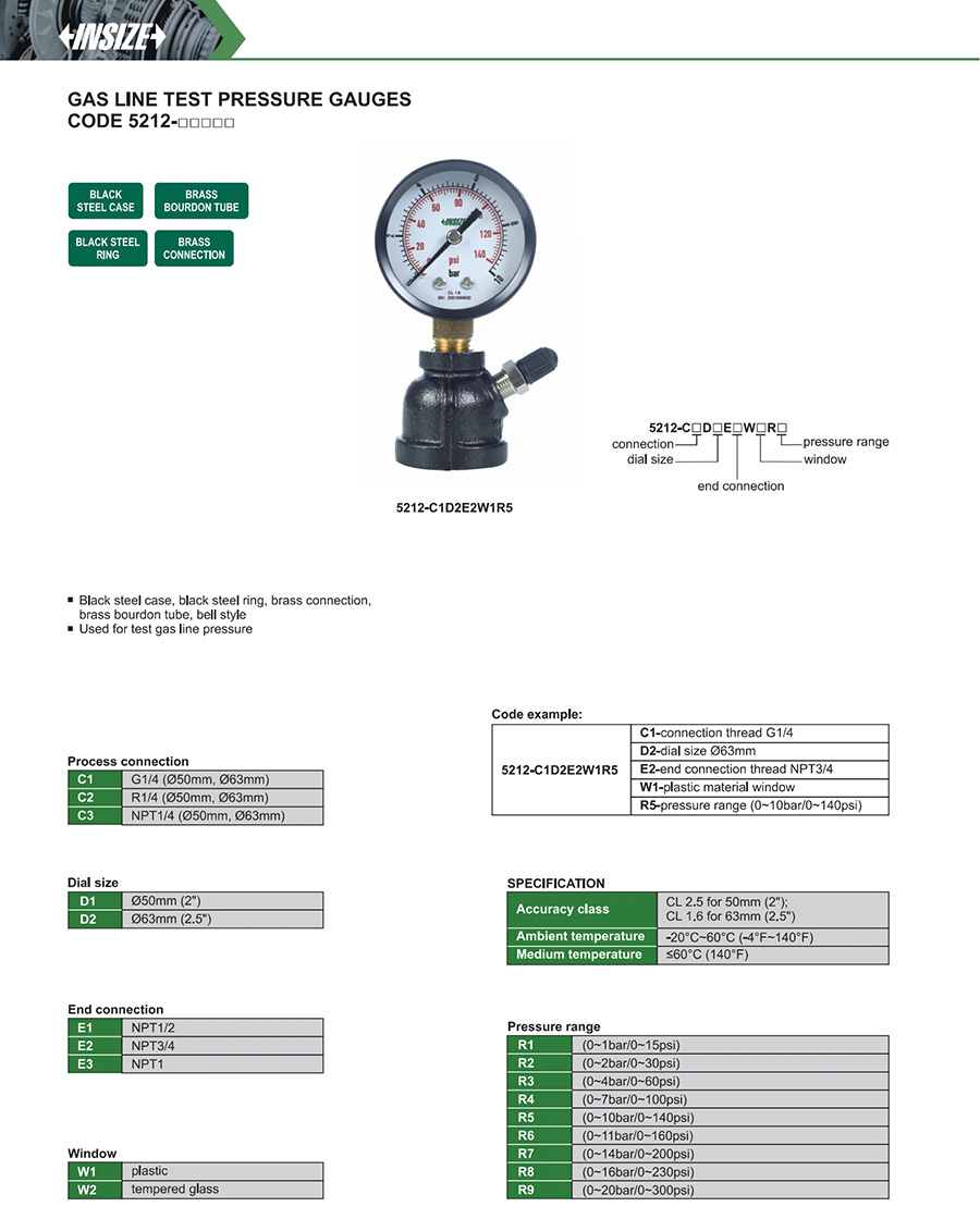 | 5212-□□□□□ | process: G1/4, R1/4, NPT1/4, end: NPT1/2, NPT3/4, NPT1 | Ø50mm, Ø63mm | plastic, tempered glass |
