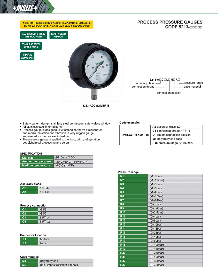 | 5213-□□□□□ | G3/8, G1/2, NPT1/4, NPT1/2 | Ø115mm | bottom, back | safety glass |