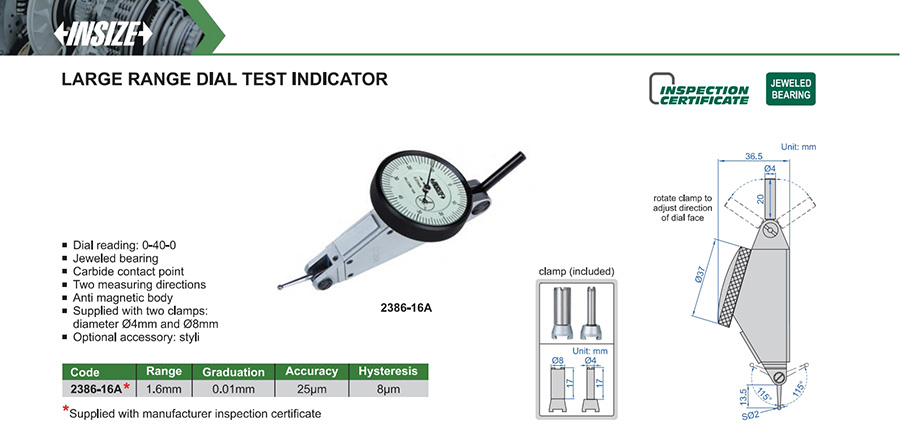 2386-16A 1.6mm 25µm 0.01mm