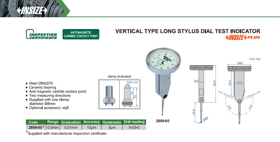 Home / Dimenzijska kontrola / Merilna orodja / Merilne ure in stojala / Dial Test Indicators