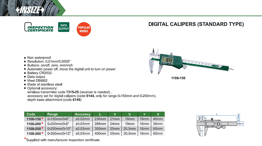 | 1108-300 | 0-300mm/0-12" | ±0.03mm | 0.01mm/0.0005" | with data interface |