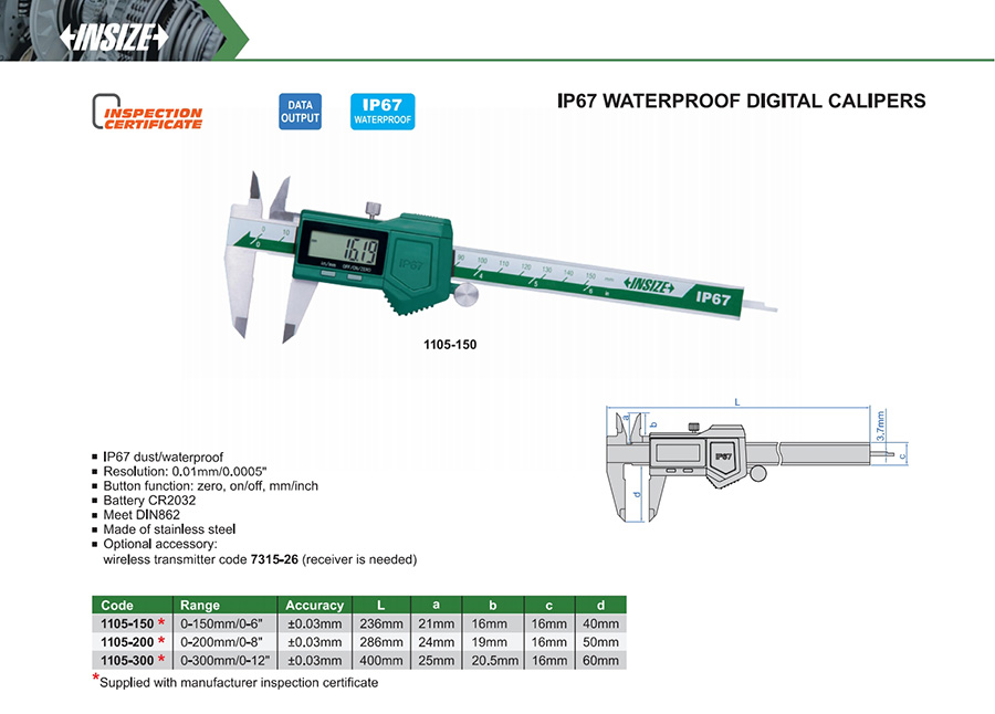 | 1105-150 | 0-150mm/0-6" | ±0.03mm | 0.01mm/0.0005" | with data interface |