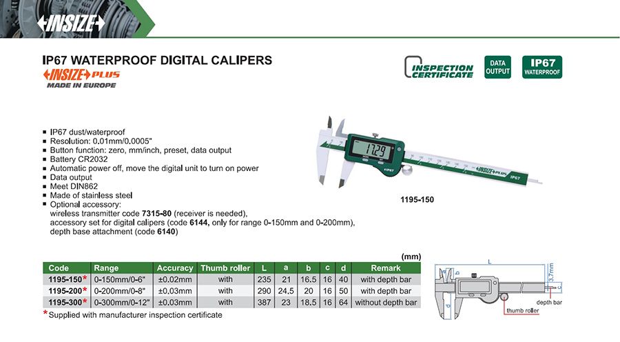 | 1195-150 | 0-150mm/0-6" | ±0.02mm | 0.01mm/0.0005" | with data interface |