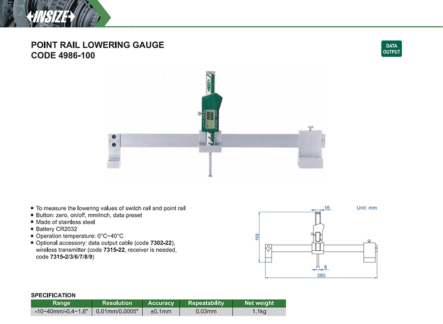 4986-100 -10~40mm/-0.4~1.6" ±0.1mm 0.01mm/0.0005"
