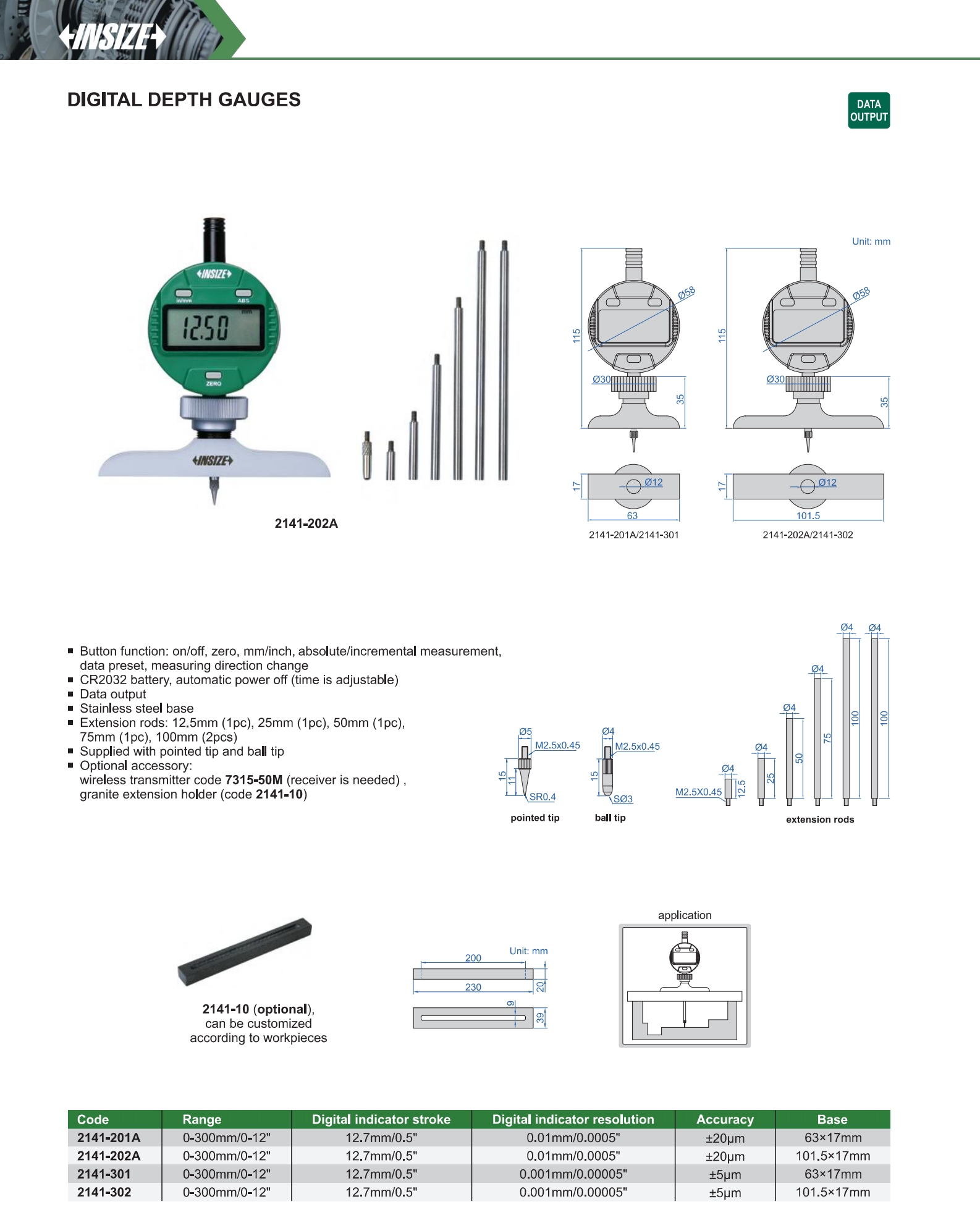 2141-201A 0-300mm/0-12" ±20µm 0.01mm/0.0005" with data interface
