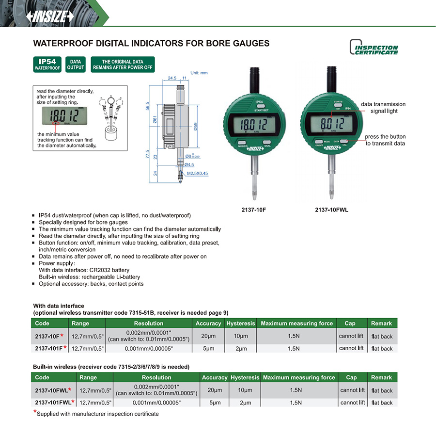 | 2137-10FWL | 12.7mm/0.5" | 20µm | 0.002mm/0.0001" | built-in wireless |