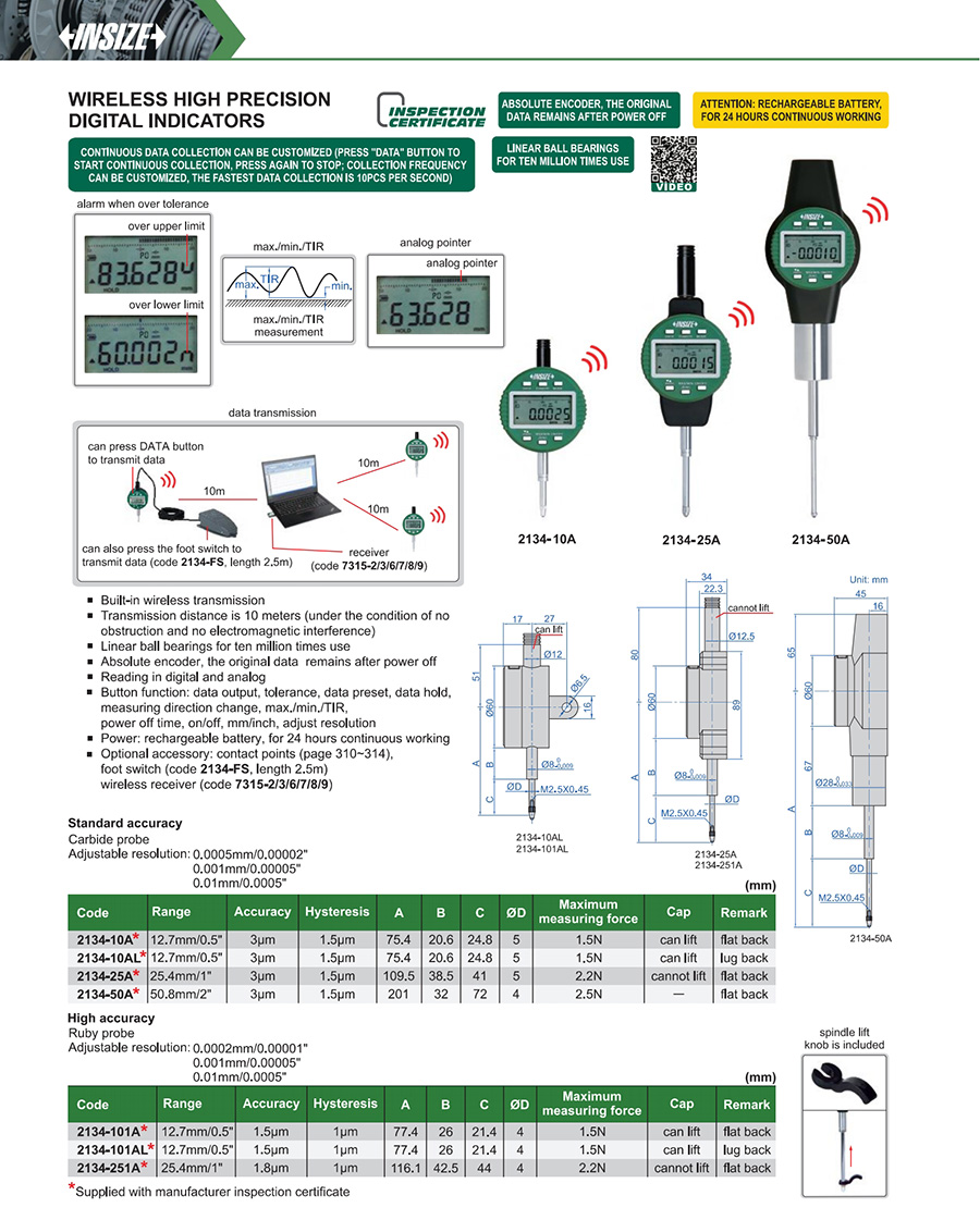 2134-25A 25.4mm/1" 3µm 0.0005mm/0.00002"