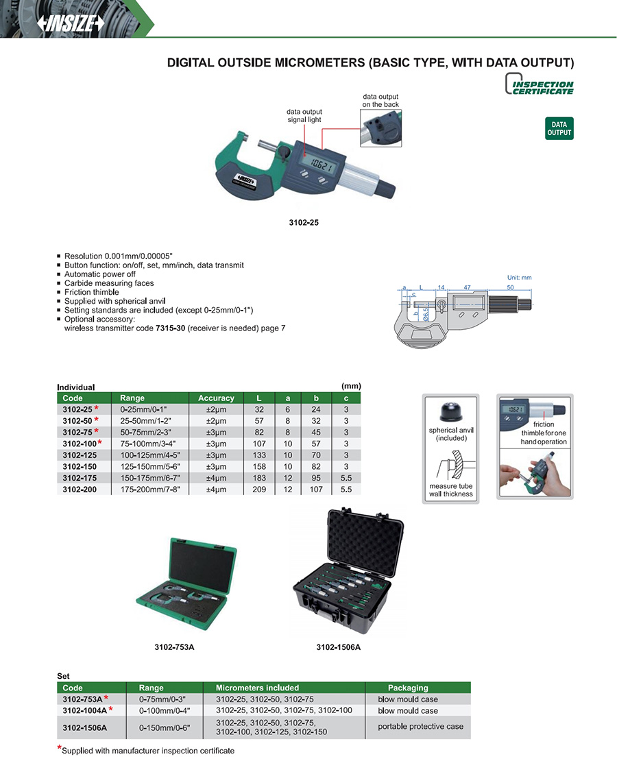 3102-150 125-150mm/5-6" ±3μm 0.001mm/0.00005"