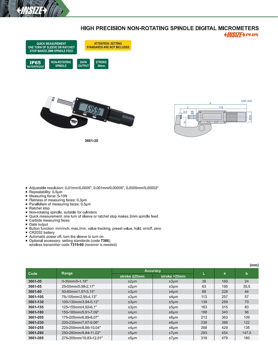 0.01mm/0.0005", 0.001mm/0.00005", 0.0005mm/0.00002" |