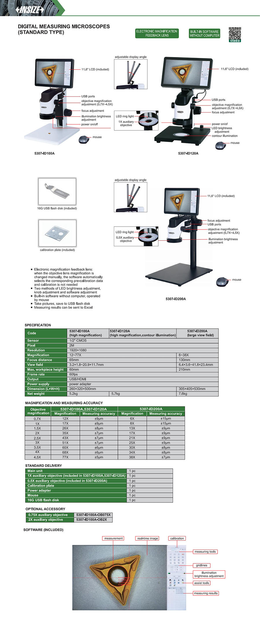 5307-ID100A digital measuring microscopes 12~77X 3.2×1.8~20.9×11.7mm 2M