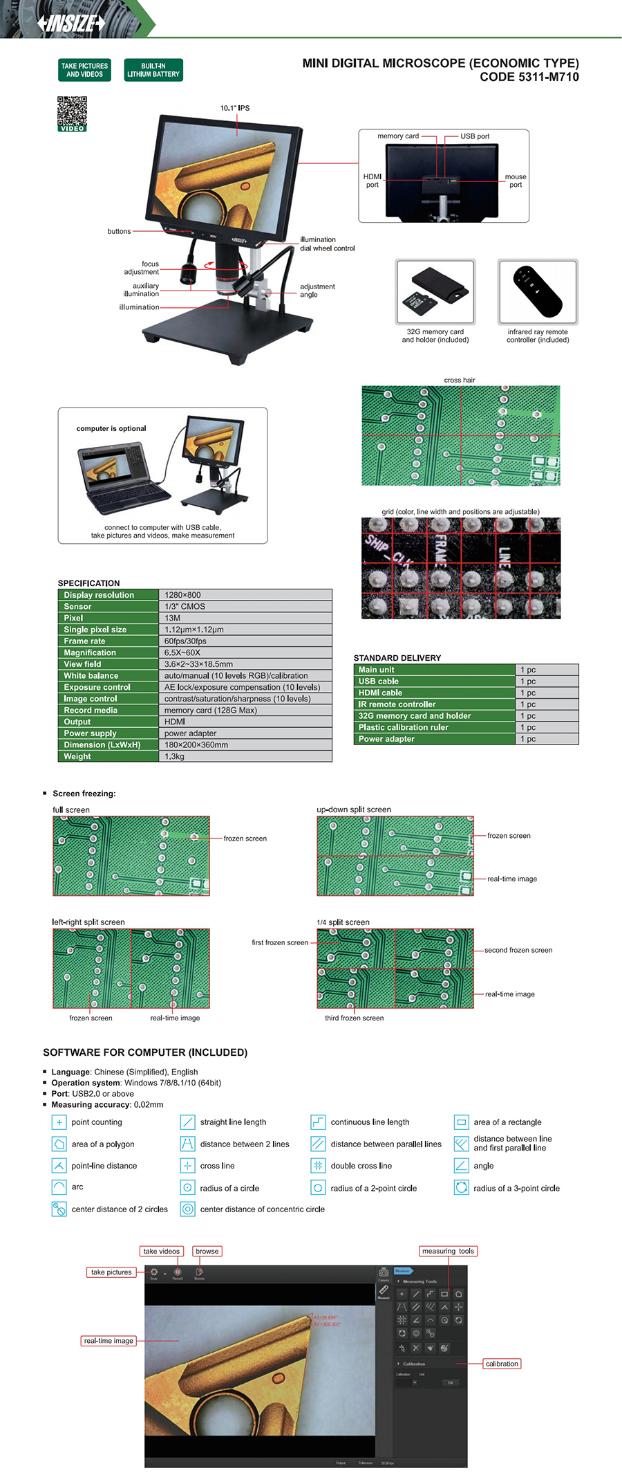 5311-M710 portable digital microscopes 6.5X~60X 3.6×2~33×18.5mm 13M