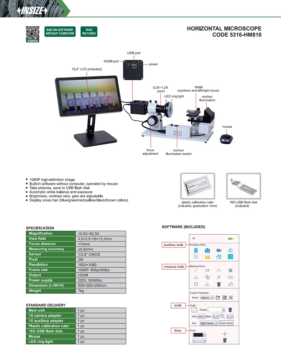 | 5316-HM810 | digital measuring microscopes | 10.5X~62.5X | 4.5×2.5~28×12.3mm | 2M |