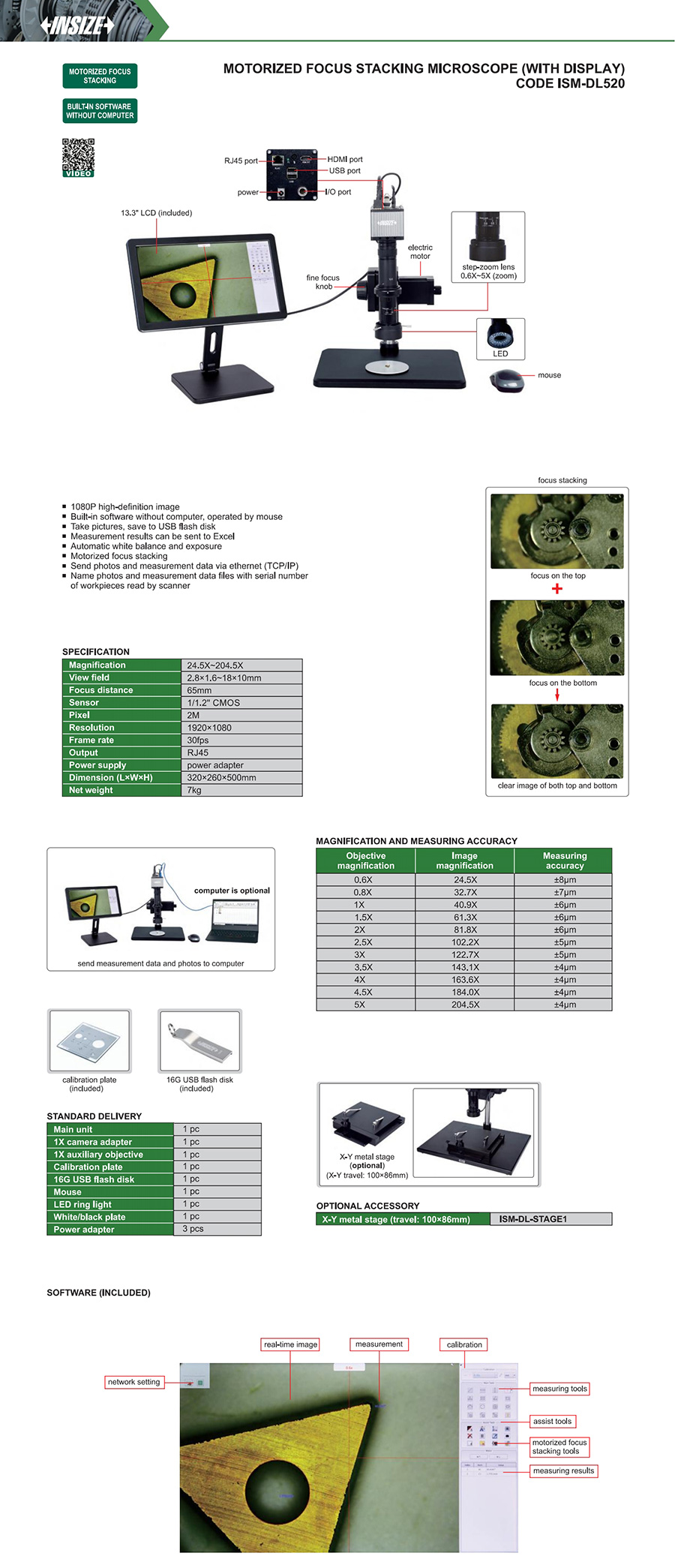 ISM-DL520 digital measuring microscopes 14.7X~122.7X 2.3×1.2~19.5×11mm 2M