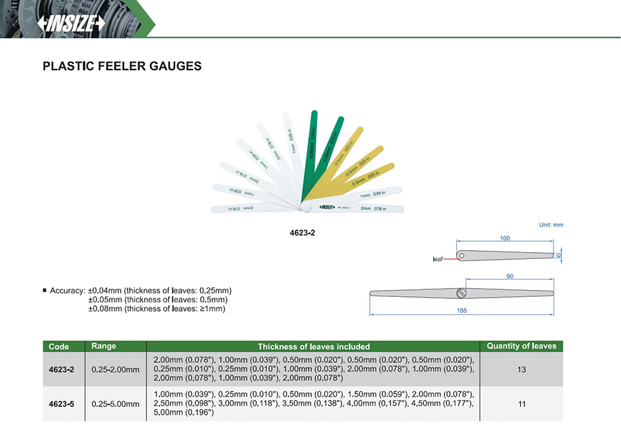 Home / Dimenzijska kontrola / Merilna orodja / Enostavna merilna orodja / Feeler Gauges