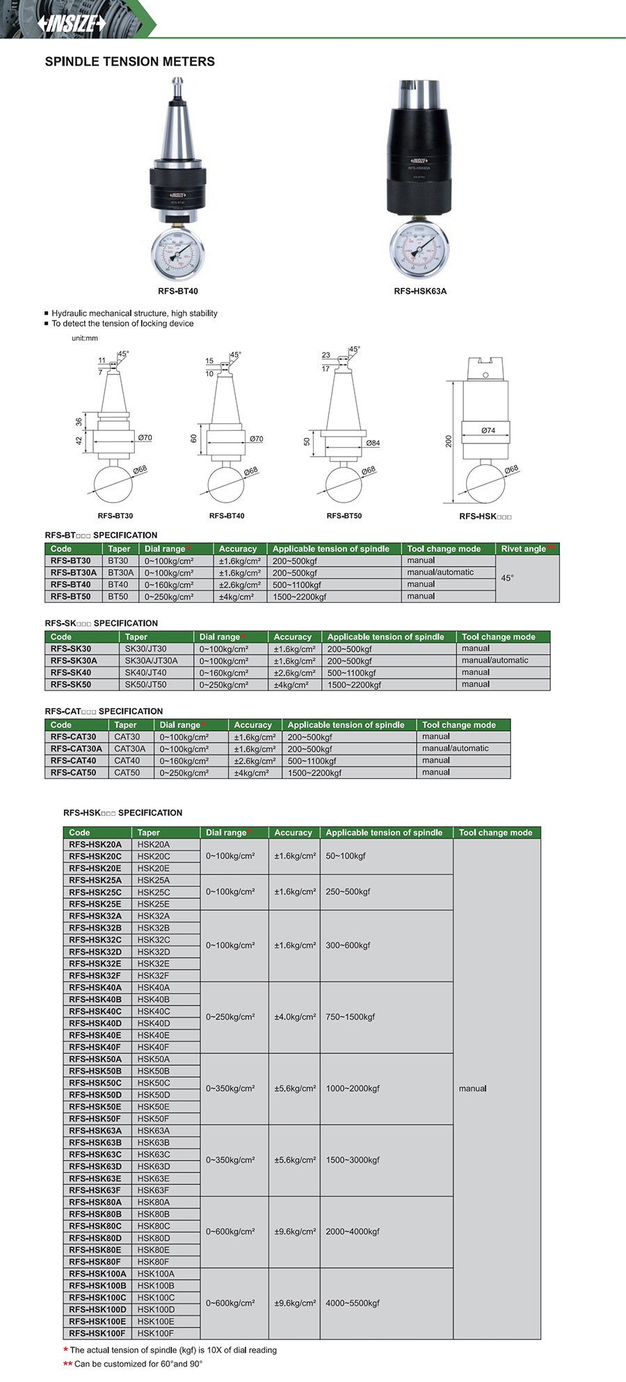 RFS-CAT30 spindle tension 0~100kg/cm² 200~500kgf
