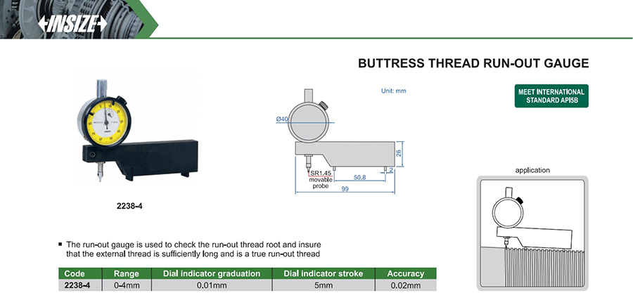 The run-out gauge is used to check the run-out thread root and ensure that the external thread is sufficiently long and is a true run-out thread