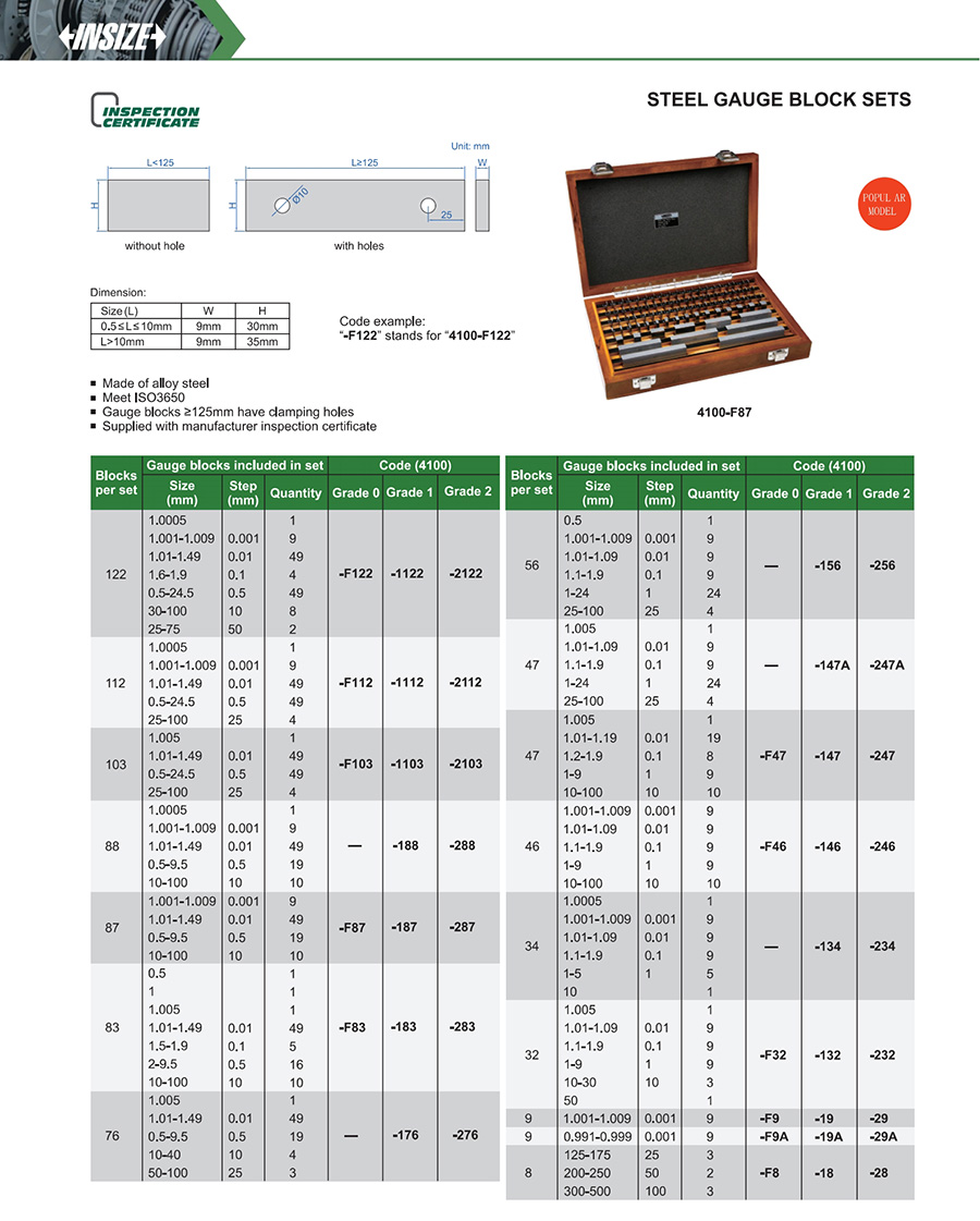 Gauge blocks ≥125mm have clamping holes