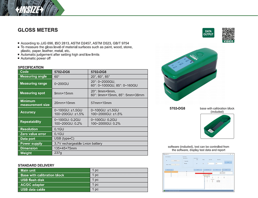 According to JJG 696, ISO 2813, ASTM D2457, ASTM D523, GB/T 9754