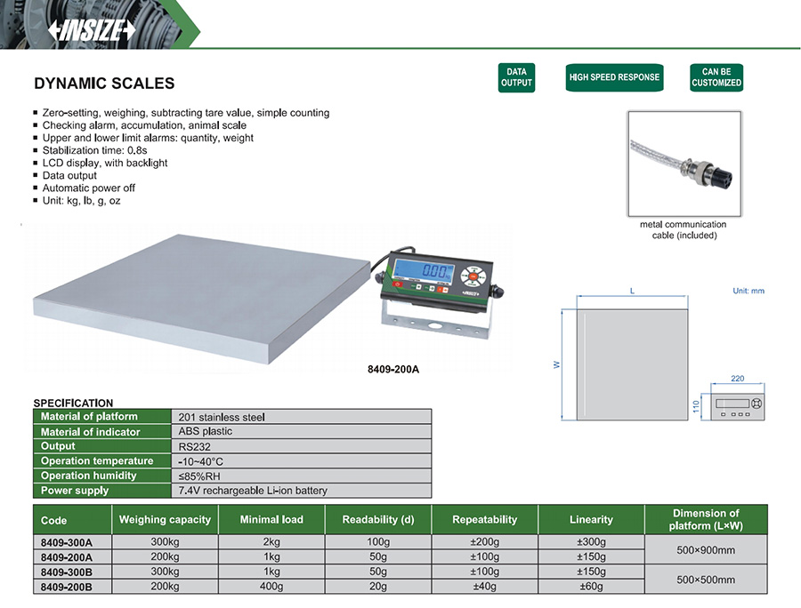 | 8409-200A | 200kg | 50g | 500×900mm |