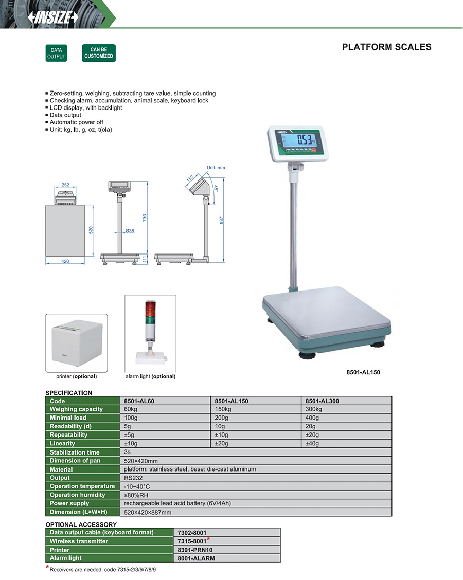 | 8501-AL300 | 300kg | 20g | 520×420mm |