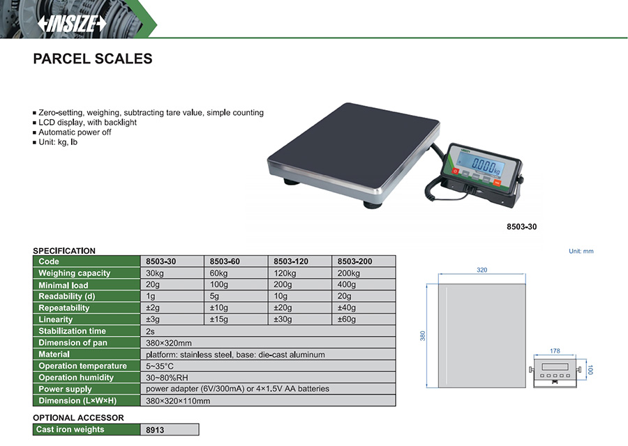 | 8503-200 | 200kg | 20g | 380×320mm |