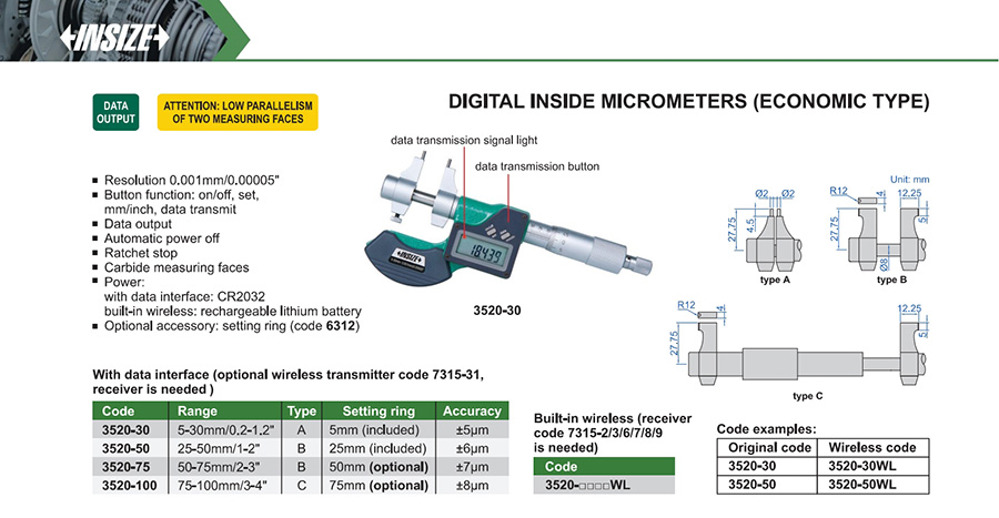 3520-100WL 75-100mm/3-4" 0.001mm/0.00005" built-in wireless